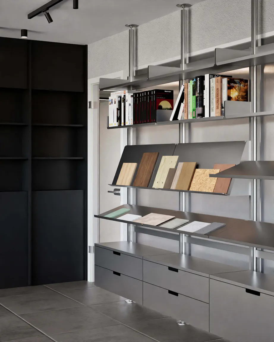 L’ampliamento dello studio come evoluzione dello spazio di lavoro, attraverso una nuova articolazione tra progettazione, incontro e ricerca materica.